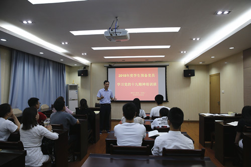 学院教授为预备党员上了一堂题为《不忘初心 牢记使命 谱写中国特色社会主义新篇章》党课。随后,培训班学员结合自身实际谈了学习体会。