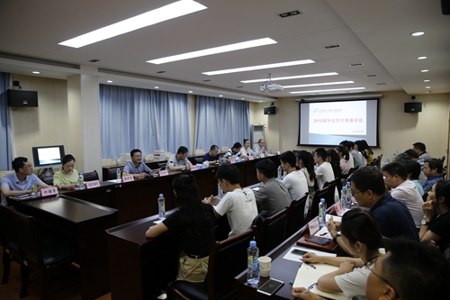 6月20日下午,学院在行政楼四楼会议室召开了2018年毕业生代表座谈会。党委书记潘晓华,党委委员、副院长熊运儿,学院学工处负责人,学生工作委员会成员部门负责人及毕业生代表参加了会议。