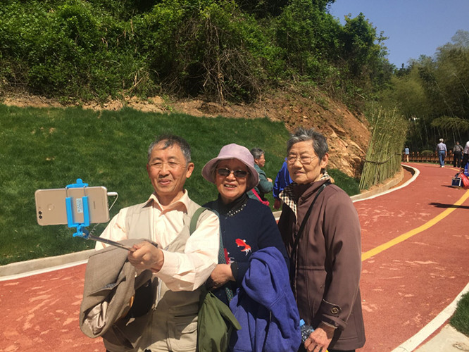 从学院出发,一路上,大家一边欣赏沿途风光,一边热烈交谈,欢声笑语不断。经过半个多小时的行程到达月亮湾山体公园。走进公园,老同志们享受着大自然明媚的阳光,三五成群,漫步在公园的栈道上,或是停步赏景,涉足留影;或是相互搀扶,闲话家常,快乐之情,溢于言表。