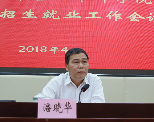 衷敬华在会上传达了省高等院校毕业生就业工作办公室相关文件精神,并作招生就业工作报告。他全面系统地分析了学院2017年招生和就业形势,并就2018年招生就业工作的总体安排进行了部署。