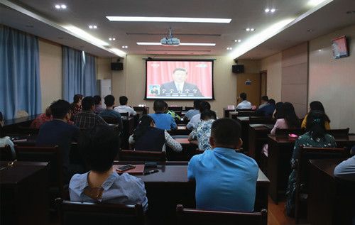 5月4日上午10:00,纪念马克思诞辰200周年大会在人民大会堂举行,习近平总书记出席大会并发表重要讲话。学院党委高度重视,认真组织全院师生通过电视、网络、手机客户端等形式观看大会直播。学院党委书记潘晓华,党委副书记、院长秦夏明,党委委员、副院长衷敬华、肖鸿晶、熊运儿,行政机关人员在行政楼第一会议室聆听习近平总书记的重要讲话。各系(部)教师和部分学生代表在第一教学楼学术报告厅,集中收看了大会直播。