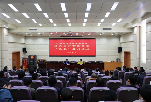3月22日上午,学院党委书记潘晓华主持召开会议传达学习贯彻全国两会精神。十三届全国人大代表、学院建筑工程系主任黄俐波,党委委员、副院长肖鸿晶、熊运儿,以及全院副科级以上干部,副教授以上职称教师参加了会议。