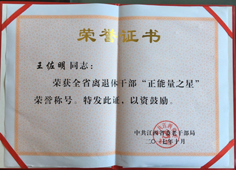 10月28日,由省委组织部、省委宣传部、省委老干部局主办的“致敬榜样的力量——全省首届最美老干部颁奖仪式”在南昌市举行。学院退休老同志王佐明被授予本次活动的“正能量之星”荣誉称号!