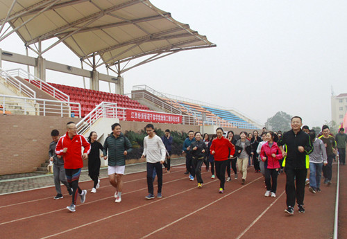 11月15日下午,学院教职工健步走在田径场开赛。比赛按年龄段分为甲、乙两组,共有100余名教职工报名参赛。学院副院长肖鸿晶、林蓉参加了比赛。