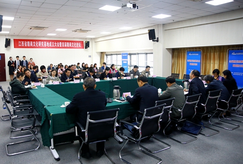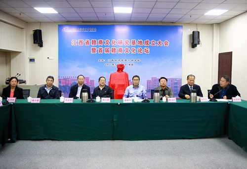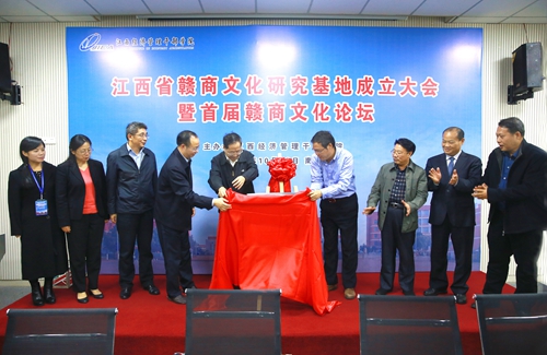 10月16日下午, 江西省赣商文化研究基地成立大会暨首届赣商文化论坛在学院举行。全国政协委员,原江西省委常委、宣传部长,江西省政协党组副书记、副主席刘上洋出席大会并为江西省赣商文化研究基地揭牌。参加了大会的还有江西省社会科学界联合会党组书记、主席吴永明,江西省工商联主席、江西省总商会会长雷元江,学院党委书记潘晓华,学院院长秦夏明,江西大成国有资产经营管理有限公司董事长、总经理揭小健,华南城有限公司副总裁,南昌华南城有限公司总经理章学方,南昌大学人文学院副院长、江西省学科带头人、博士生导师张芳霖,江西省社会科学界联合会智库建设与成果管理处负责人曹彩蓉及学院相关领域专家。秦夏明主持大会。