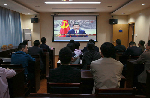 党委宣传部干部衷欣感慨,“期待在新一届中央领导集体的领导下,为全面实现我党提出的“两个一百年”的宏伟蓝图,砥砺前行。我们将认真学习领会党的十九大报告的思想精髓,将更加紧密团结在以习近平同志为核心的党中央周围,奋发努力,撸起袖子加油干,为实现中华民族伟大复兴中国梦凝心聚力。”