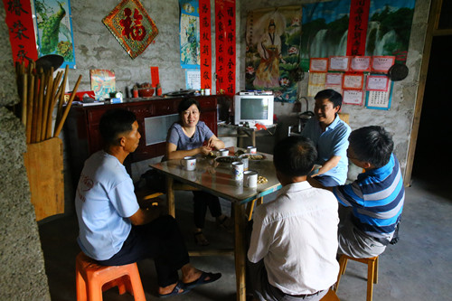来到桐古村,调研组首先听取了学院派驻桐古村第一书记程鹏的帮扶工作汇报,以及营盘圩乡乡长肖瑞培、桐古村支部书记和村主任对第一书记程鹏帮扶工作情况介绍。然后,调研组一行还现场查看了学院的帮扶项目,了解了学院扶贫项目资金的使用情况,查阅了相关资料,入户走访了贫困户曾昭昌家,为他们送上了“微心愿”,询问他们的生产、生活情况,并详细了解了学院“互联网+贫困户”模式的帮扶成效。