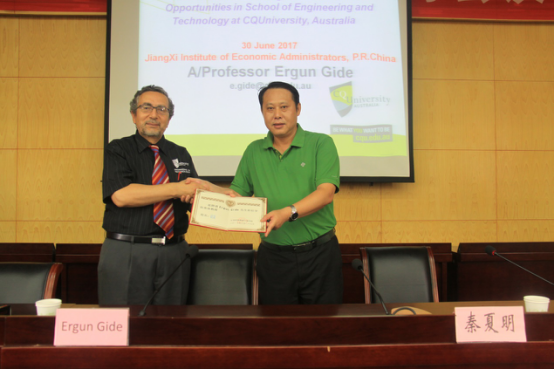 讲座开始前,秦夏明代表学院对Ergun Gide的来访表示热烈欢迎,并为其颁发了学院客座教授聘书。