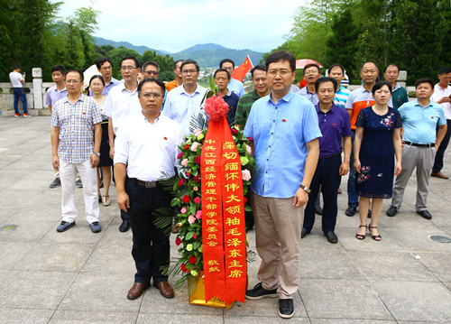 7 月1 日下午和2 日上午,潘晓华带领班子成员和各系(部)、各部门主要负责人,先后参观瑞金叶坪一苏大旧址、沙洲坝二苏大旧址、沙洲坝旧址群和古田会议旧址、古田会议纪念馆、“星星之火 可以燎原”写作旧址——协成店等革命旧址,分别向红军烈士纪念塔和毛泽东雕像敬献了花篮,并重温了入党誓词。7月2日下午,本次学习会还邀请了龙岩市委党校原常务副校长江维力教授做《闽西地区在中央革命根据地建设中的作用》专题讲座。通过革命旧址参观和讲座辅导,全面详细了解了中央苏区的形成及发展和古田会议在党的建设和军队建设中的重要地位,切实感受党的光辉历史和苏区干部密切联系群众的优良作风。