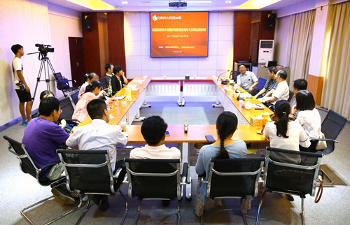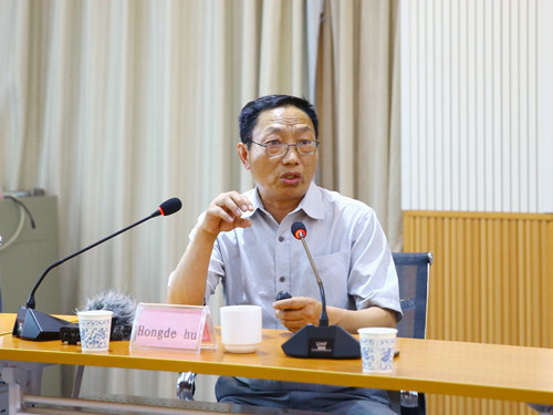 在自由交流阶段,Hongde Hu, Ph.D.与在场人员进行了热烈地交流和探讨。吴永明结合Hongde Hu, Ph.D.学术报告所述内容,就我省支柱产业发展现状及发展前景作了交流发言。