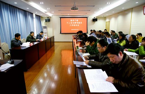 这次培训会的主要任务是学习贯彻中央《领导干部报告个人有关事项规定》和《领导干部个人有关事项报告查核结果处理办法》两项法规,按照省委组织部要求,对做好2017年全院领导干部报告个人有关事项工作作出部署并进行填报业务培训。