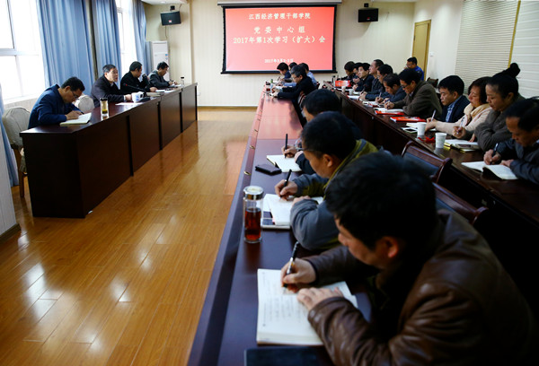 3月2-3日,学院召开2017年第1次党委中心组学习(扩大)会。本次学习会以落实全面从严治党要求、深入学习贯彻落实党的十八届六中全会精神、十八届中央纪委七次全会精神、省第十四届纪委第二次全会精神为主要内容。学院党委书记潘晓华主持学习会并以《准确把握全面从严治党新内涵 主动适应全面从严治党新要求》为题作党课辅导。院长秦夏明,副院长衷敬华、肖鸿晶,全体正处级干部参加了学习会。
