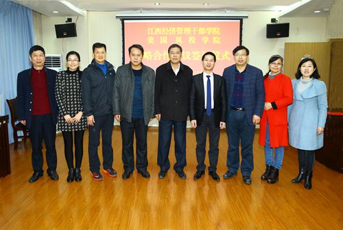 为进一步拓宽学院开放办学渠道,开阔办学视野,2016年12月20日下午,学院与美国风投学院在学院行政楼四楼会议室签署战略合作协议。院党委书记潘晓华、院长秦夏明、副院长刘光华和美国风投学院院长钟德辉出席签约仪式。刘光华代表学院与钟德辉签约。