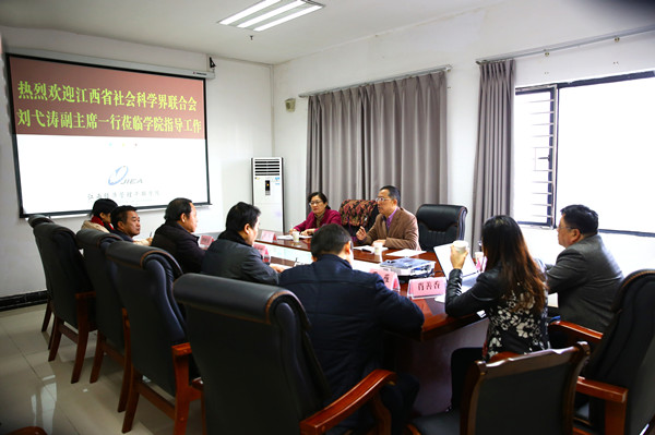 12月28日上午,省社会科学联合会副主席刘弋涛来院考察,智库建设与成果管理处处长王芃一行陪同考察。此次考察主要是对学院省级科研平台“江西现代服务业发展研究基地”进行年度考评。学院在图书馆研究基地会议室召开考评汇报会。院长秦夏明,副院长、研究基地主任肖鸿晶,基地挂靠部门会计系和相关部门的负责人参加会议。汇报会由肖鸿晶主持。