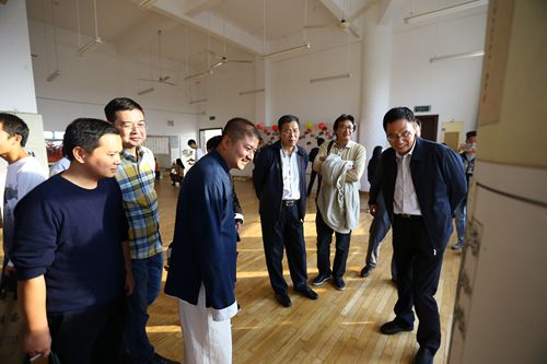 下午,潘晓华来到大学生活动中心参观书画作品展。他仔细观看着字画作品,对每一幅作品都给予点评。现场照片墙展示了书法协会五周年、十周年庆典的照片,这些照片见证了书协的成长,非常具有纪念意义。会友们聚在一起交流互动,展示自己的作品,现场热闹非凡、其乐融融。
