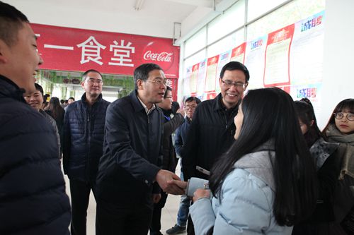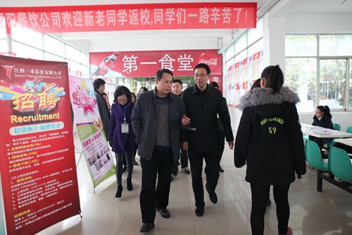 学院党委书记潘晓华、院长秦夏明在副院长衷敬华和相关部门工作人员的陪同下查看了洽谈会现场的情况。院领导仔细询问企业单位的招聘情况,与招聘代表和求职学生交谈,了解企业需求和学生的情况。