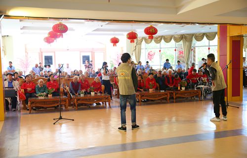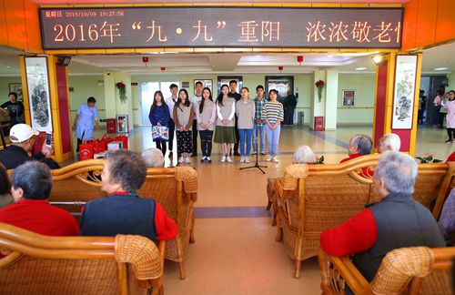 学院教职工以及院艺术团,武术协会,书法协会的学生献上了精彩纷呈的节目。欢快的歌声,潇洒的舞步,以及苍劲有力的书法,不仅为老人带来了欢笑,也展现了学院师生的风采。院内老人欢聚一堂,其乐融融,为师生们的表演点赞,献上了热烈的掌声。同样,老人们也准备了合唱与独奏,释放了他们的热忱。