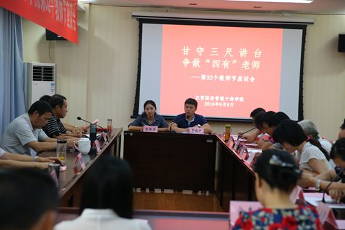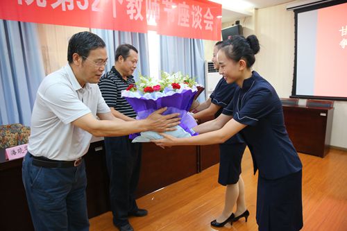 金秋硕果飘香,为喜迎第三十二个教师节,9月9日下午,学院在行政楼四楼会议室召开了以“甘守三尺讲台,争做四有老师”为主题的教师节座谈会。学院党委书记潘晓华,院长秦夏明,副院长衷敬华、肖鸿晶、刘光华,各系(部)、各部门负责人与教师代表欢聚一堂。座谈会由秦夏明主持。