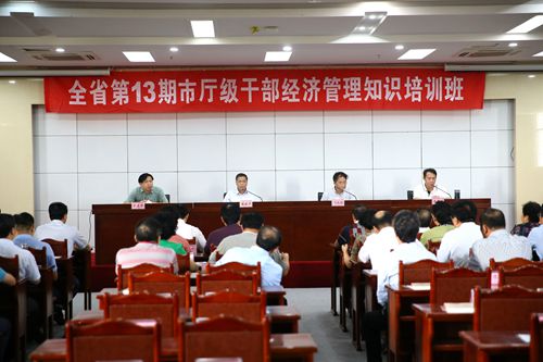 9月19日上午,全省第13期市厅级干部经济管理知识培训班开班仪式在学院新赣商培训中心举行。省委组织部干教处调研员郭敏捷,学院党委书记潘晓华、院长秦夏明、副院长刘光华,培训处负责人和全体学员参加了开班仪式。共有来自全省各地43名市厅级领导干部参加本期培训。开班仪式由刘光华主持。 潘晓华在开班仪式上致词。他指出,本期培训班的教学内容坚持三个紧紧围绕的原则,紧紧围绕省委省政府重大决策部署和中心工作,紧紧围绕习近平七一讲话精神,紧紧围绕经济社会发展热点问题。开设了《中国共产党问责条例》专题讲座、当前国有企业改革的几个重大政策理论问题、中国经济的短期下行与长期增长前景、“一带一路”新倡议与对外经济合作、供给侧结构性改革、开创江西三农工作新境界等12个政经热点、重点、难点专题讲座,并邀请了省外知名专家学者为培训班授课。在教学模式上,本期培训进一步丰富了情景模拟教学、现场体验教学、结构化研讨、学员论坛等教学方法。
