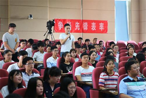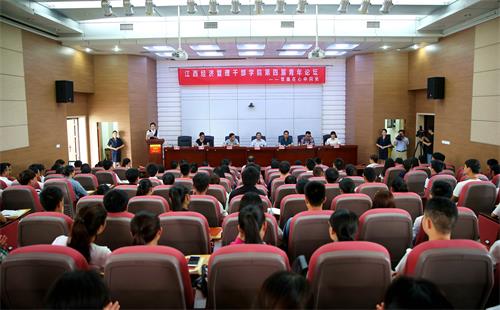 本届论坛邀请了四位嘉宾,分别是优秀党务工作者和优秀共产党员、共青团宁都县委书记、校友谢庆浩,优秀共产党员、江西省九江市永修县永丰垦殖场社保所所长、纪委委员、校友谭少金,优秀共产党员、青年教师代表、学院信工系团总支副书记肖燕以及国家奖学金、全省优秀共青团员获得者、学院优秀应届毕业生代表、预备党员李艳青。四位嘉宾依次演讲,围绕主题为大家讲述了他们自身的经历。谭少金首先讲述了在校学习和工作的经历。他告诉同学们只要自己努力,到哪读书都能成才,而且要坚定理想信念,脚踏实地、奋力拼搏,人生才会赢。他平时在工作中经常学习党章党纪,牢记党的宗旨,时刻以一名优秀党员的标准严格要求自己。在乡镇机关工作后,深知百姓办事不容易,心里也始终装着百姓,全心全意为人民服务;接着肖燕带大家回顾了自己的青春成长历程,用大学生活、入党经历和入职经历告诉同学们,要活得有价值;接下来,从小出生在党员家庭的李艳青和大家分享了在校三年工作、学习、生活以及刚刚步入社会的心得体会。作为一名入党积极分子、再到预备党员的成长历程,她为自己是一名光荣的预备党员而感到自豪;最后,校友谢庆浩交流了他对“两学一做”学习教育的认识。他认为青年人应当在学习中强自信、知敬畏、明方向,在实践中长见识、增本领、作表率。要树立“梦想从学习开始、事业靠本领成就”的观念,让勤奋学习成为青春远航的动力。