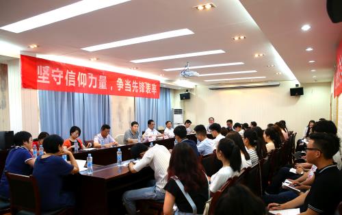 6月13日下午, 学院2016届毕业生代表、学生党员代表座谈会在行政楼四楼会议室举行。党委书记潘晓华,副院长衷敬华以及党政办、宣传部、学工处、各系党总支、团委负责人参加了座谈会,应届毕业生代表、学生党员代表共33人参会。会议由学工处处长主持。