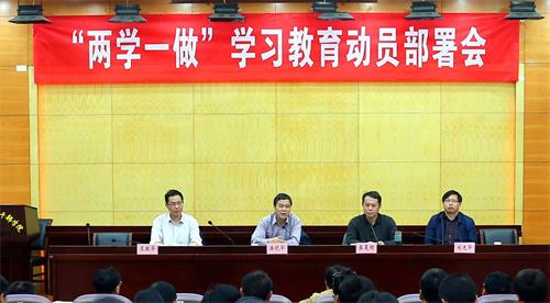 4月27日下午,学院在一教学术报告厅召开全院“两学一做”学习教育动员部署会,学习贯彻习近平总书记关于“两学一做”学习教育重要指示和全国“两学一做”学习教育工作座谈会精神、全省“两学一做”学习教育动员部署会和省委强卫书记的讲话精神,对学院“两学一做”学习教育进行动员部署。党委书记潘晓华,院长秦夏明,副院长衷敬华、刘光华以及全院各党总支、机关直属党支部书记、各党支部书记、副处级以上干部参加了会议。会议由秦夏明主持。