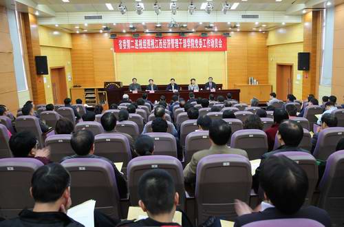 省委第二巡视组陈松远、李云、涂志柏及巡视组成员,姚红雁、肖继仁、熊三平、黄新祥、陈美川、肖世海、李勋财出席会议。学院领导潘晓华、秦夏明、衷敬华、肖鸿晶、刘光华、李薇,各系(部)、各部门副处以上干部、副高以上职称人员,2013年以来退休的副处级以上干部、副高以上职称的老同志参加了会议。
