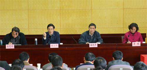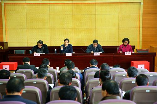 根据省委考核学院党委领导班子及领导干部2015年度工作的安排部署, 3月14日下午,学院在第一教学楼学术报告厅召开考核测评会。以省纪委副书记陈小平为组长的省委考核组第二组全体成员,院领导,学院处级干部、正高职称人员和教职工代表参加了会议。学院党委书记潘晓华主持会议。