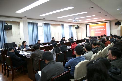 12月15日下午,学院在行政楼四楼会议室举行党委中心组(扩大)学习会议。学院党委副书记、院长秦夏明主持学习会议。党委委员、副院长衷敬华、肖鸿晶、刘光华,党委委员、纪委书记李薇及学院副处以上干部(含助理)参加学习。