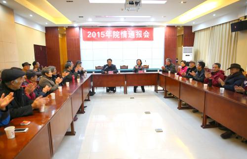 2015年12月18日上午,2015年院情通报会在学院新赣商培训楼二楼会议室召开。院长秦夏明、纪委书记李薇、工会(离退休人员工作处)的同志以及学院离退休老同志共40余人参会。会议由李薇主持。