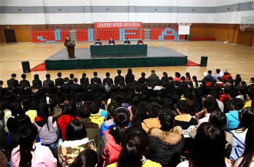 11月11日至13日,学院第七次学生代表大会在大学生活动中心召开。副院长衷敬华和学工处(团委)、各(系)部团总支等部门负责人、全体辅导员、学生代表一起参加了大会闭幕式。会议由院团委书记主持。