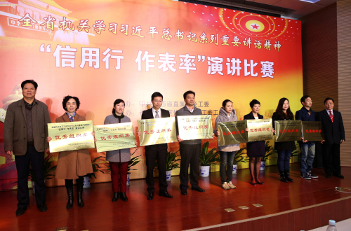 由中共江西省直属机关工委主办,工委宣传部、工会工委等承办的全省机关“信用行 作表率”演讲比赛于11月23-25日在学院举行。省直机关工委书记杨兰根,副书记李跃进,工委委员、组织部部长章官生,工委委员、宣传部部长刘大胜,学院党委副书记、院长秦夏明,党委委员、副院长刘光华,党委委员、纪委书记李薇出席决赛并为获奖选手颁奖。