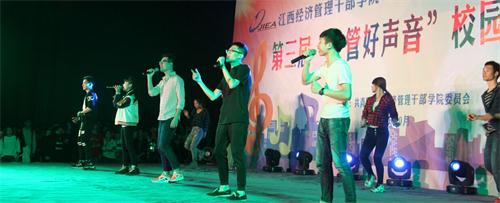10月15日晚上 6:30,学院图书馆前的广场上人山人海,由共青团江西经济管理干部学院委员会举办的第三届“经管好声音”校园歌手决赛拉开了帷幕,院长秦夏明、副院长衷敬华、肖鸿晶、刘光华,纪委书记李薇出席了活动,省委办公厅综合三处调研员郭锦亮,省委办公厅综合三处主任科员郭联发应邀来到了现场。
