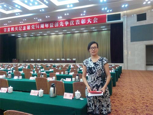 6月30日,在“七·一”党的生日前夕,省直机关工委以俭朴而庄重的方式,在滨江宾馆召开“省直机关庆祝建党94周年暨创先争优表彰大会。会上,授予50个基层党组织和150名同志先进荣誉称号。其中,学院信息工程系团总支副书记肖燕同志喜获“省直机关优秀共产党员”光荣称号。
