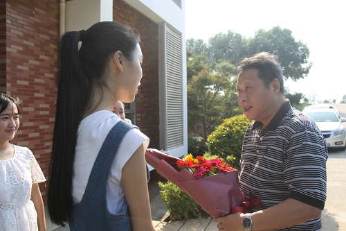 上午7点30,当一辆辆承载着老师们的校车缓缓驶人校园,学生们激情洋溢的迎接着老师们下车,手里捧着一支支鲜艳的玫瑰花,赠送到每位老师的手上,并对老师们说上一句:“老师,您辛苦了!节日快乐。”此刻整个校园都充斥着经管学子对老师的感恩和祝福。听着真挚的祝福,闻着沁人心脾的花香,老师们脸上露出了花一样的笑容,微笑伴随着清晨第一缕阳光,格外的美!