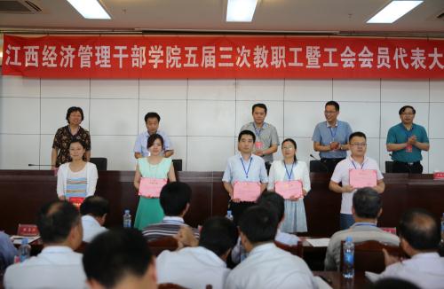 6月2日,学院五届三次教职工暨工会会员代表大会(以下简称“双代会”)在学院新赣商培训中心顺利召开,会期一天。学院领导秦夏明、衷敬华、肖鸿晶、刘光华、李薇出席会议,大会共有92名代表参加,上午的大会扩大到全体教职工参会。