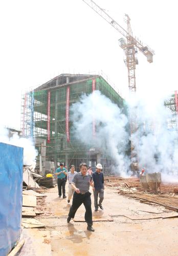上午10:00,院长秦夏明,副院长衷敬华、肖鸿晶、刘光华,纪委书记李薇以及各系(部)、部门相关负责人来到教学实训用房工地现场,参加封底仪式。仪式上,鞭炮齐鸣,礼花飞舞,现场一片喜庆。