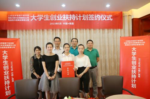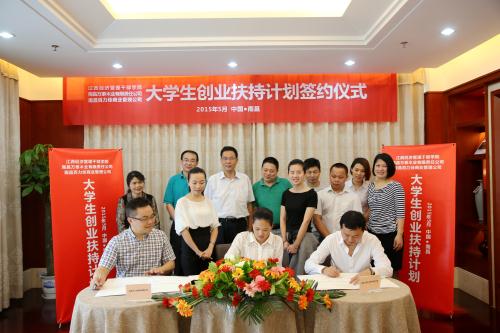 5月18日,学院与南昌百力佳商业以及南昌万泰木业签约,校企携手,共同发起“大学生创业扶持计划”。学院副院长衷敬华、工商系相关负责人以及公司负责人参加了签约仪式。接受此次扶持计划的是来自学院的三位“幸运儿”,2015届市场营销1班的应届毕业生姜婷、方雅倩和罗艳。