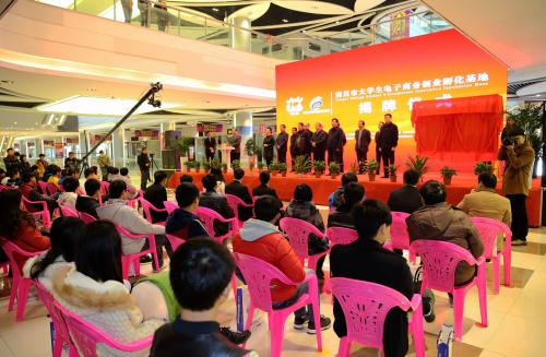 12月31日上午,江西省创业孵化基地暨南昌市大学生电子商务创业孵化基地在南昌华南城举行揭牌仪式。院长秦夏明、副院长肖鸿晶,江西省人社厅副厅长刘滇鸣、南昌市人民政府秘书长朱敏华、南昌市人社局局长朱东、江西省人社厅劳动就业服务管理局局长王小平、南昌市商业贸易委员会主任吕娄等领导出席了揭牌仪式。
