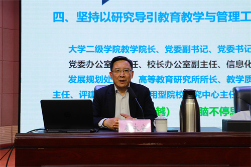 顾永安以《从升格本科、合格本科到一流应用型本科:如何高质量地建设一所新建本科院校》为题,从增进对应用型本科的认识、应用型本科高质量发展面临的问题与困境、应用型本科高质量发展的方位大势、应用型本科高质量发展的顶层设计、应用型本科高质量发展的重点任务及院校研究几个方面深刻阐释了高质量建设应用型本科的重点,指明了方向。