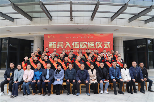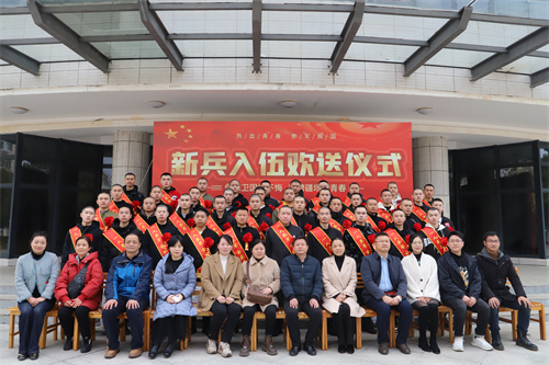 最后,与会领导与新兵及家长合影留念,并发放了纪念品。本次欢送会不仅鼓舞了入伍同学的士气,增强了他们的责任感和使命感,也营造了大学生参军光荣的良好氛围,进一步激发了大学生参军入伍的热情。