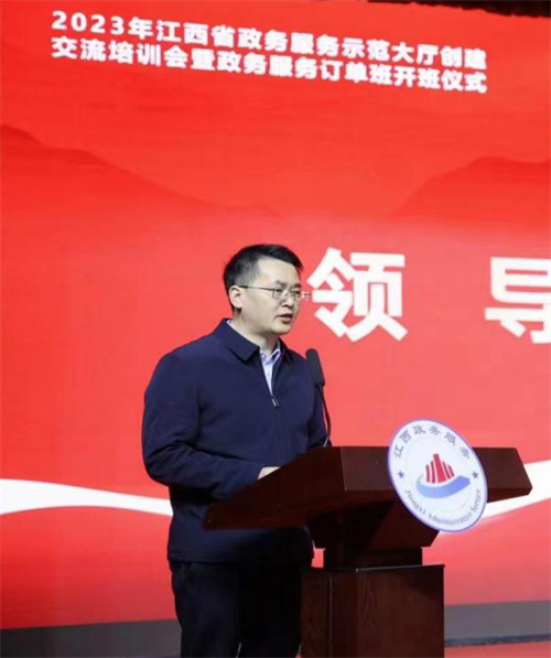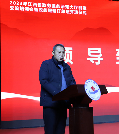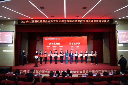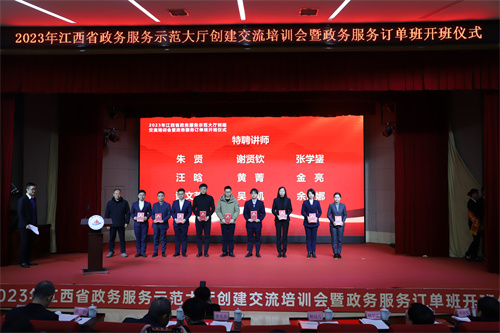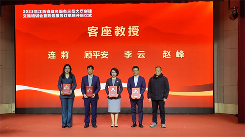 12月18日上午,全省政务服务示范大厅创建交流培训会暨2023级公共事务管理(政务服务)订单班开班仪式在学校航空大楼多功能报告厅举办。省政府副秘书长、省政务服务办主任李光东,全省各设区市、赣江新区、县(市、区)政务服务管理部门主要负责同志,全国政务服务领域专家教授,校党委书记秦夏明,党委委员、副校长熊运儿,江西中智经济技术合作有限公司相关负责同志出席开班仪式,学校政务服务订单班部分老师和学生约400人参加仪式。