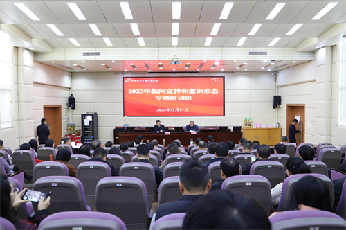 11月17日,学校举办新闻宣传和意识形态工作专题培训班。党委书记秦夏明出席开班式并讲话。在家校领导,各党总支(支部)书记、宣传委员,学校新闻宣传工作骨干及学生记者分别参加相关课程学习。