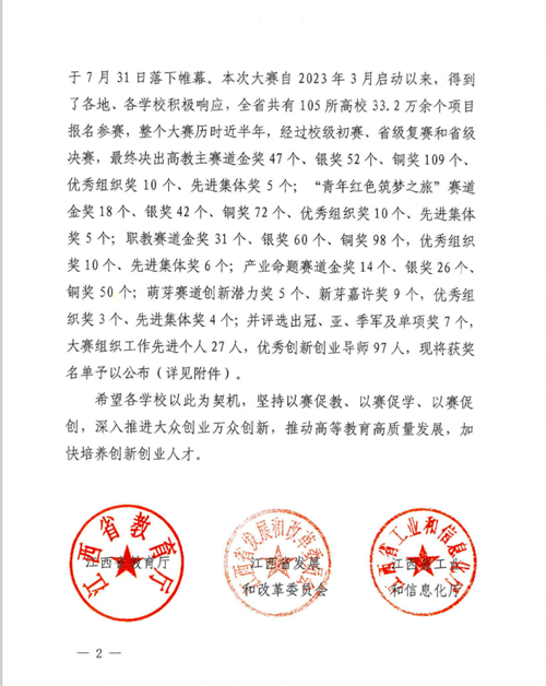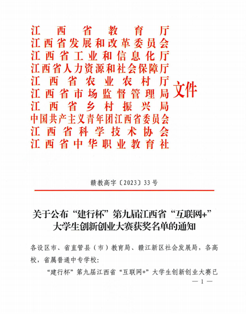 近日,“建行杯”第九届江西省“互联网+”大学生创新创业大赛获奖结果公布,学校参赛项目《流芳豆品——中国乡镇豆坊集群发展第一品牌》荣获省级金奖,参赛项目《焕然一新——生物甲酯燃料先行者》荣获省赛铜奖,彭黎明荣获“优秀创新创业导师”称号。