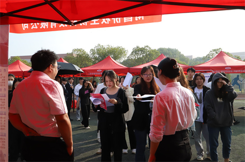 为切实做好毕业生就业服务工作,全力促进毕业生更加充分更高质量就业,11月5日上午,学校在田径运动场举办2024届毕业生双选会。校党委书记秦夏明深入活动现场,与招聘单位工作人员和毕业生们亲切交流,详细了解参会单位招聘和毕业生应聘情况。