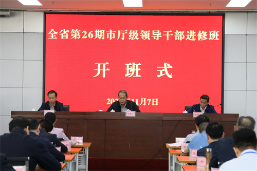 11月7日上午,全省第26期市厅级领导干部进修班开班式在学校培训楼二楼多功能教室举行。校党委书记秦夏明,省委组织部干部教育处处长吴奕斌出席开班式,开班式由党委委员、副校长肖鸿晶主持,市厅班全体学员参加开班式。