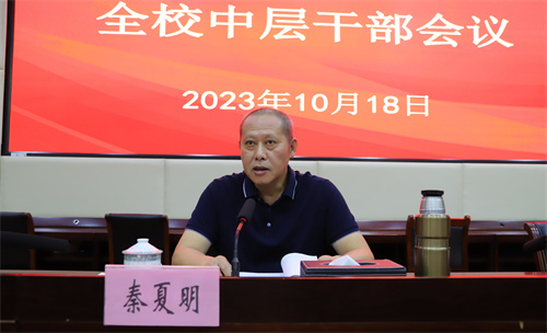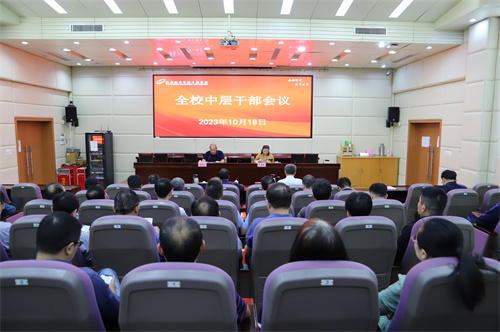 10月18日,学校召开中层干部会议,传达学习习近平总书记考察江西重要讲话精神,学习全省领导干部会议精神,研究部署学习宣传贯彻工作。党委书记秦夏明主持并讲话,校长龙国英传达习近平总书记考察江西重要讲话精神和全省领导干部会议精神,党委委员、副校长肖鸿晶、熊运儿、吴猛强,以及全校中层干部参加会议。