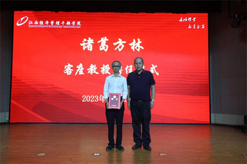 报告会前,秦夏明为诸葛方林颁发了客座教授聘任证书。