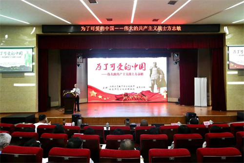 诸葛方林以“为了可爱的中国——伟大的共产主义战士方志敏”为题,从方志敏立志报国、革命救国和以身殉国革命生涯三个阶段,用丰富详实的史料、朴实感人的讲述、生动活泼的形式,再现了方志敏为民族解放、人民幸福而“努力到死、奋斗到死”的人生历程和精神追求。报告会中,他清唱自己创作的红色歌曲《精诚的寄托》,带领全体人员深情诵读方志敏《可爱的中国》经典片段,让全体师生进一步深切领会方志敏烈士坚定的理想信念和深厚的爱国主义情怀。