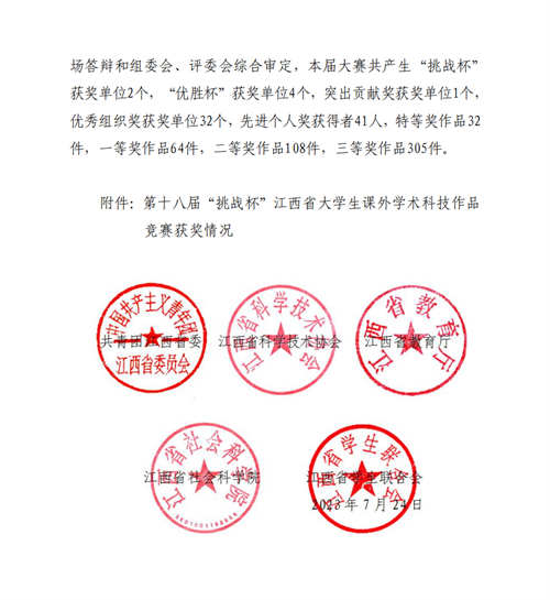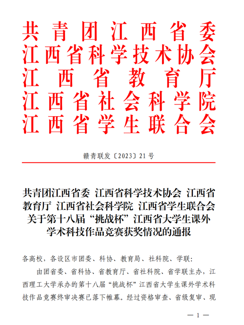 近日,第十八届“挑战杯”江西省大学生课外学术科技作品竞赛获奖结果公布,学校作品《基于多旋翼无人机的可定制化高空玻璃清洁机器》荣获省级三等奖。